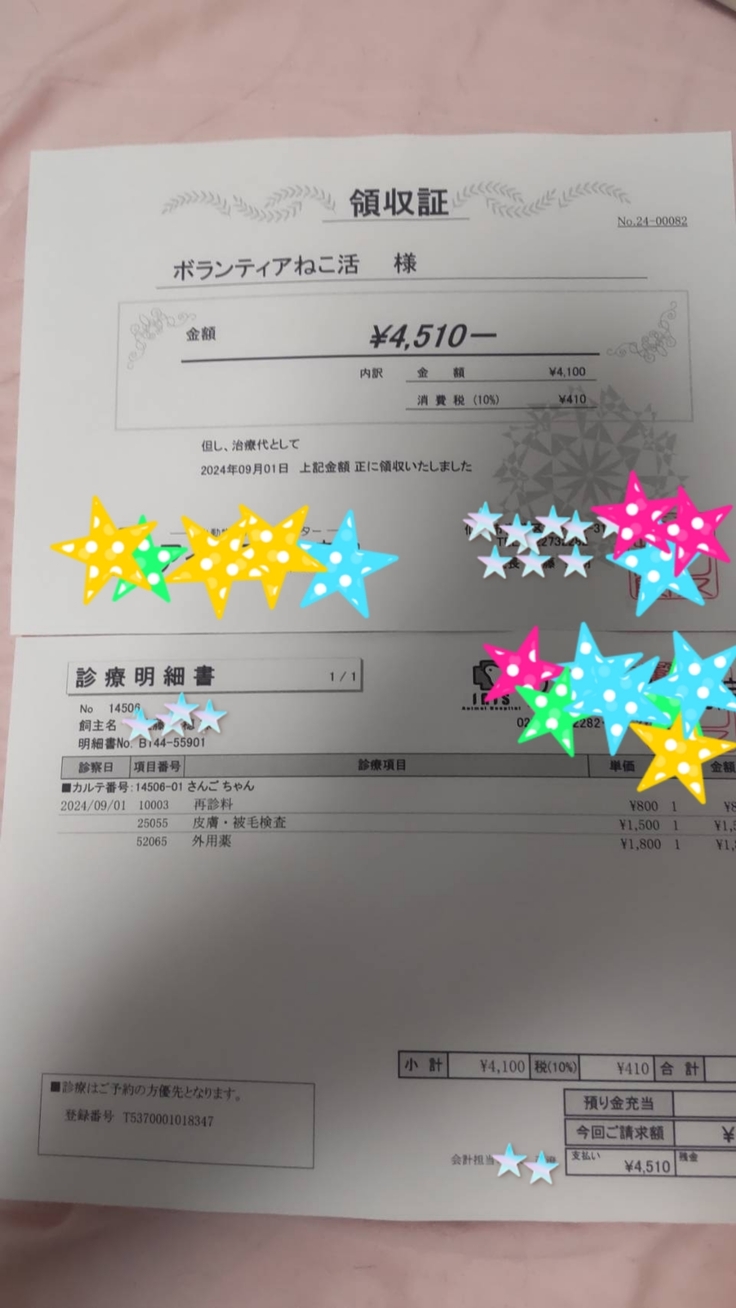 2週間程まえに耳の後ろの脱毛により預かりボランティアさんに病院に行っていただきました。