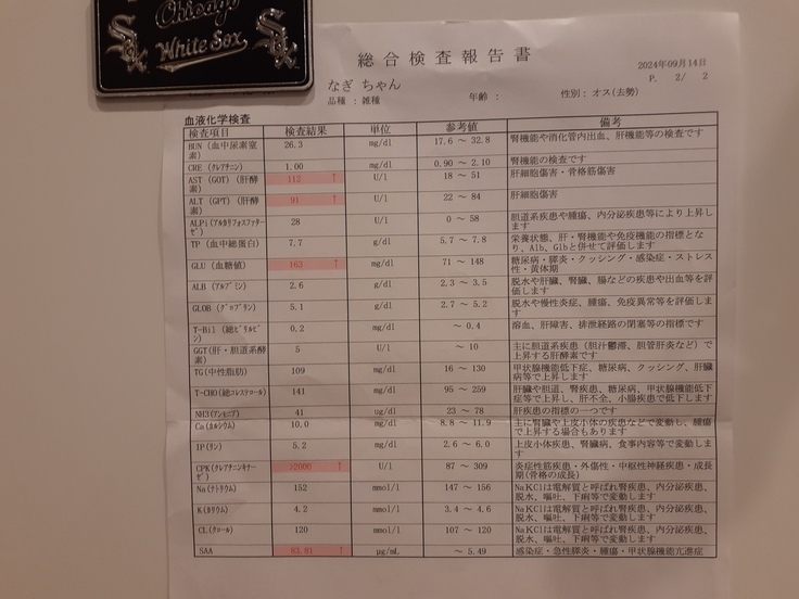 ただやはり腸が腫れていることと暴れてしまうことにより血液検査結果は物凄く数値が悪かったです。