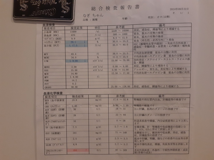 前回のレントゲン、血液の結果と、数日の観察により可能性のある疾患を排除した内容をお伝えしました。