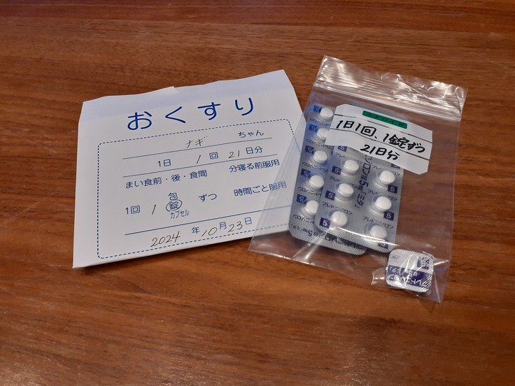 フードを変えたので便に少し変化は現れましたがさほどの問題は見受けられないため23日プレドニンを1錠半から1錠に減量することになり、そちらの量を処方していただきました。
