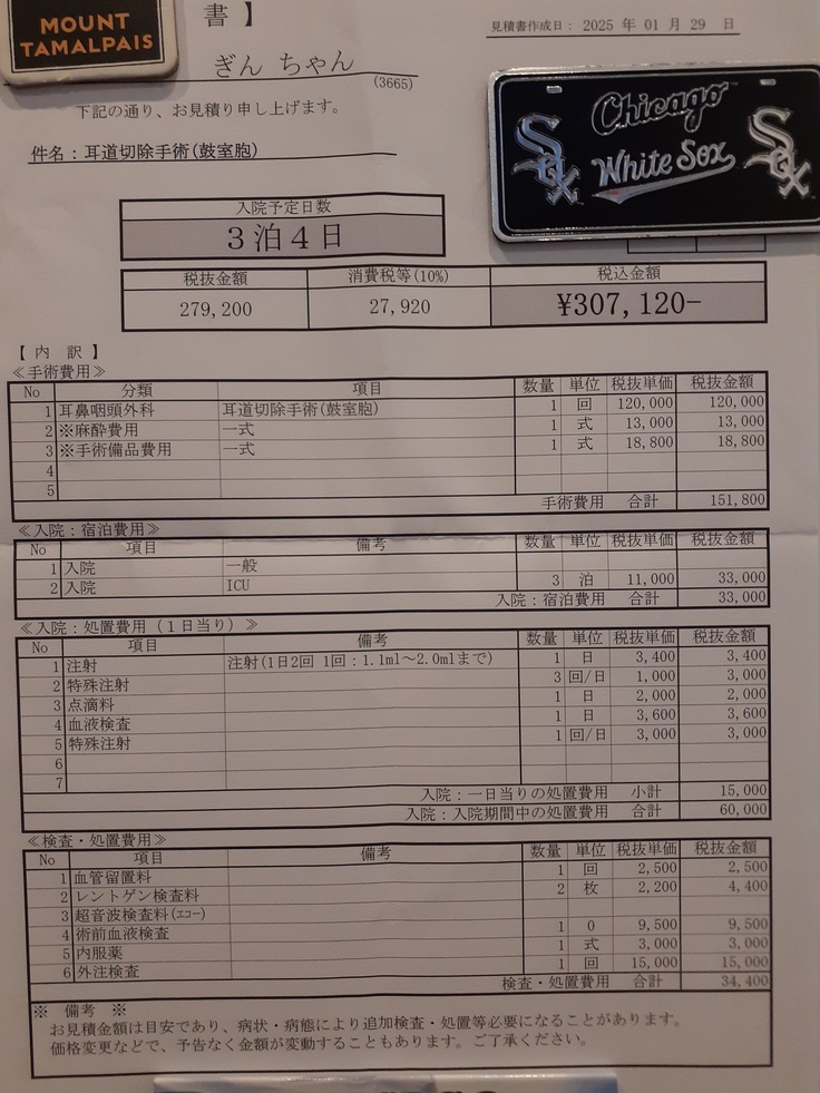 聞いていたより手術自体の費用は抑えられていましたが、術前の半日入院の回数、術後の入院や、通院、投薬等を含めると+10万~20万は見ておかないといけないなと思ってます。