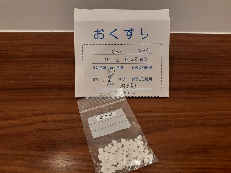 こちらは点滴の抗生剤と同じものを投薬でも。ということで前回のと少し変わっています。