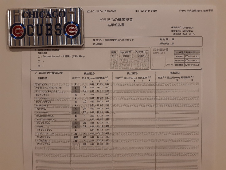 感受性のある抗生剤なども調べていましたがたまたま前回変更していただいた抗生剤が合っていたようで改善されたとのことです。