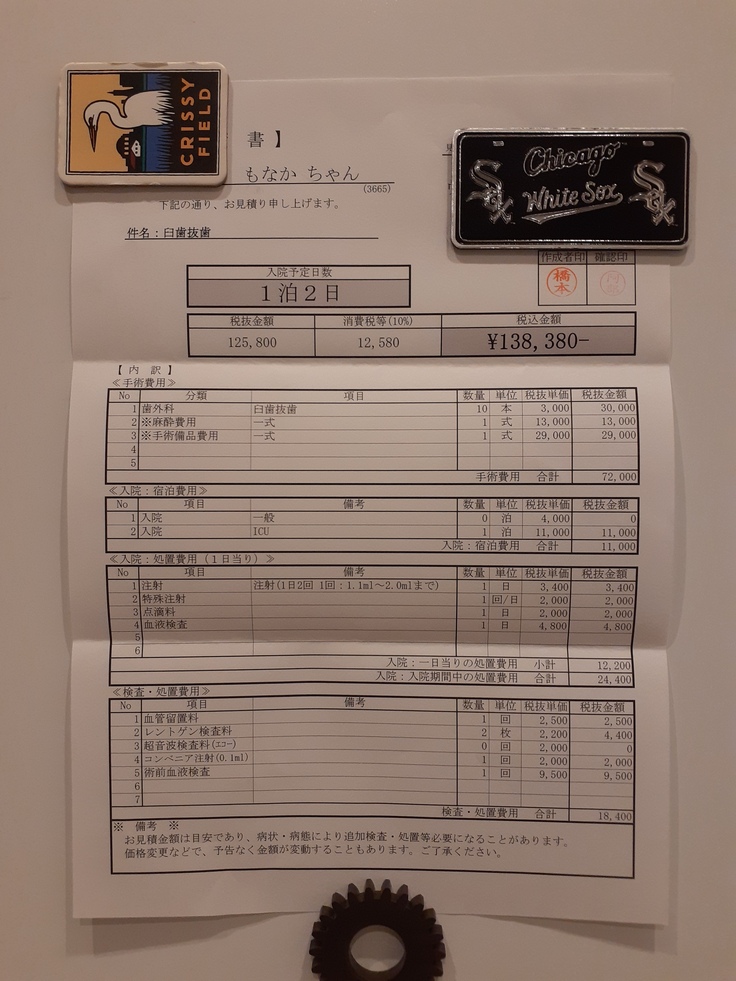 それにしても手術も治療も高くて見積り書をいただく度に予想以上の金額を提示されて本当に厳しいし、ざわざわします。