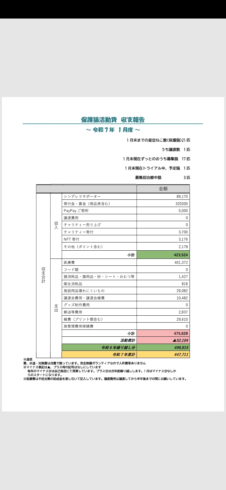 驚くほどの医療費で、自転車操業ではありますが皆様の助けを借りてなんとか踏ん張っている状態です。