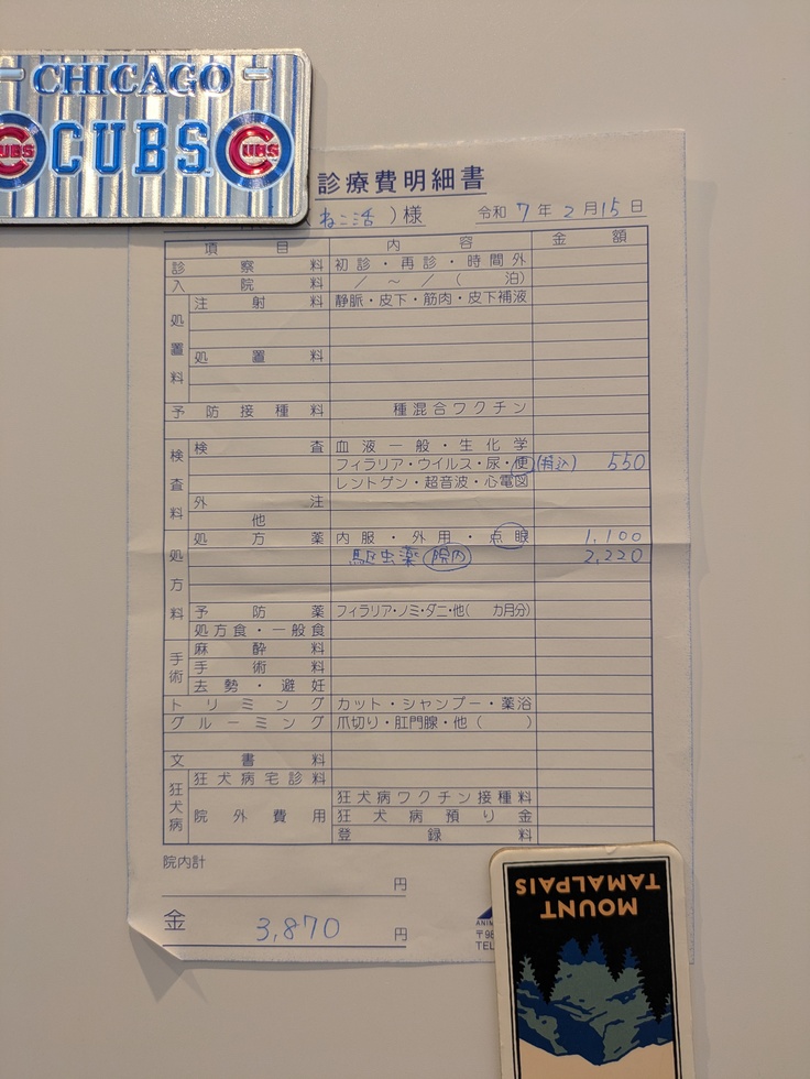 そして[つきまろ君]一昨日、マンソンでもなく回虫でもないけれどその中間くらいの何かが出てきたので今日15日に病院に行ってきました。