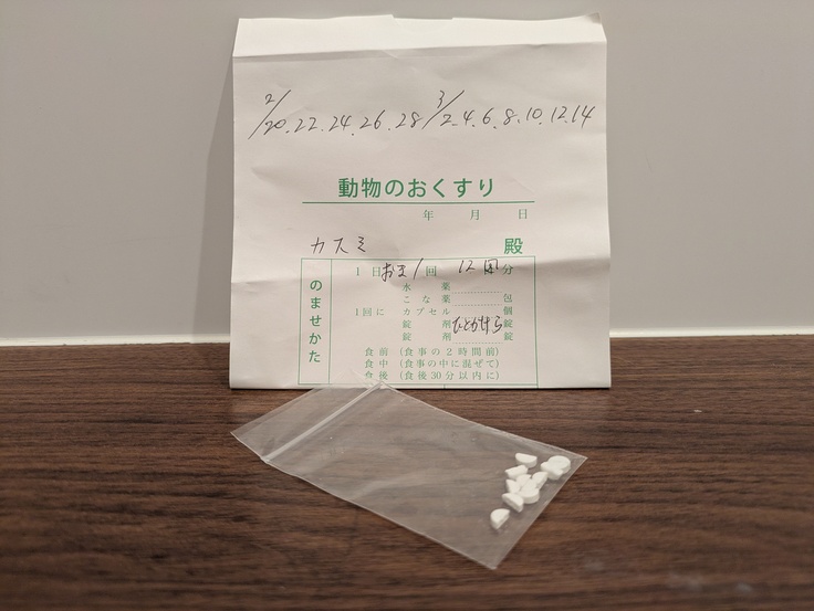 また前後しますが20日木曜日[かすみ君]のアレルギーで通っている動物病院でステロイドの投薬を処方していただきました。