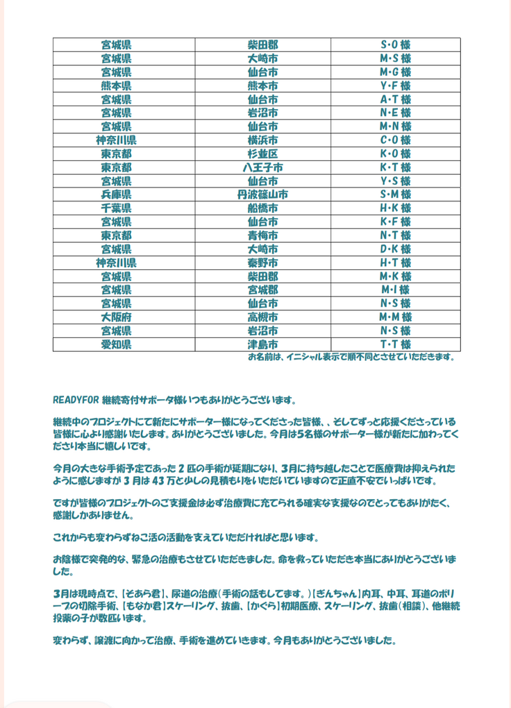 また2月の収支報告とねこ活の輪もホームページにアップしてましたのでご覧いただくと幸いです。