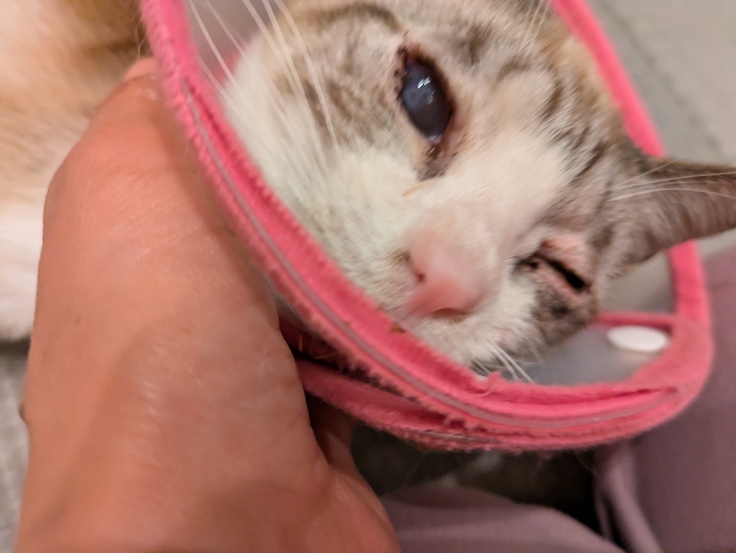 午前中に[あおいちゃん]目の瞬膜切除剥離手術をしに病院へ。
