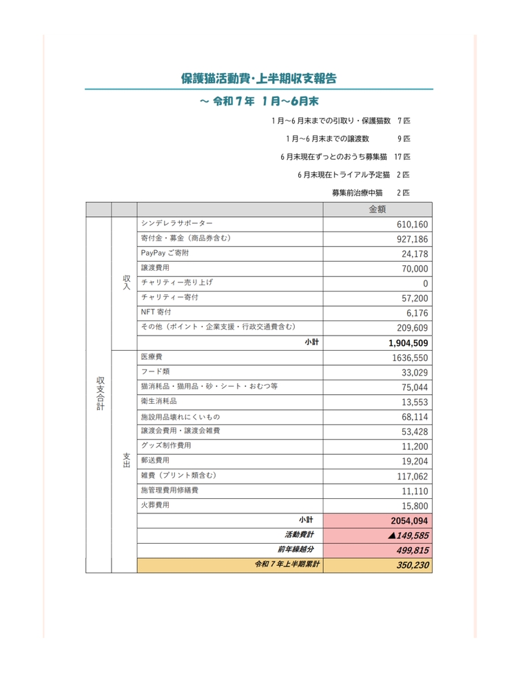そして6月の収支報告と上半期(1月〜6月末)の収支報告もホームページにアップいたしました。