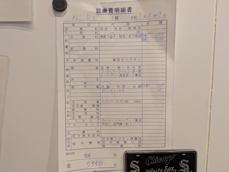 本日、[ちゃたん君]のステロイドと抗生剤をいただいてきました。