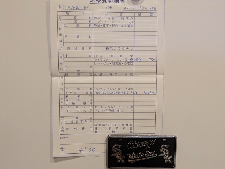 重複となりますが明日は[むぎちゃん]のマンソン駆虫で病院へ。