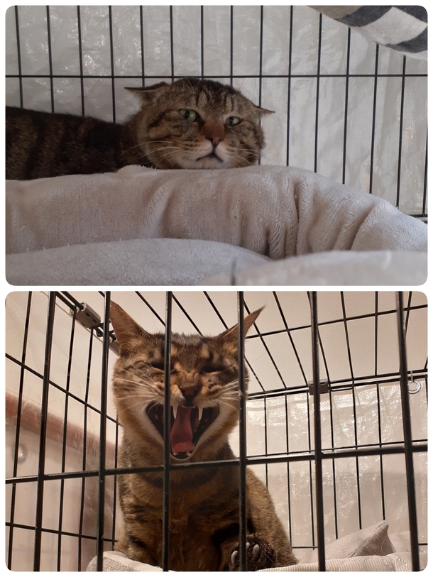 先ほどから健康な猫と同じ部屋に移動しましたがまだ威嚇が激しいのでゲージにて人馴れと猫に慣れるかどうか様子をみていきたいと思います。