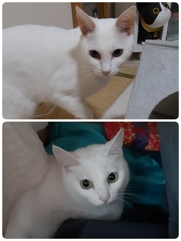 多分親子と思われる2匹は野良猫として長い間お外で暮らしていた白猫です。