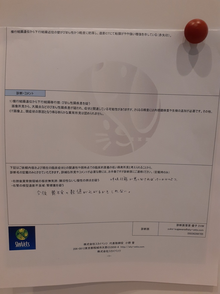 10月30日に超音波断層検査、内視鏡検査、CT検査をした【凪君】の診断結果が今週月曜日、5日に分かりましたのでご報告させていただきます。