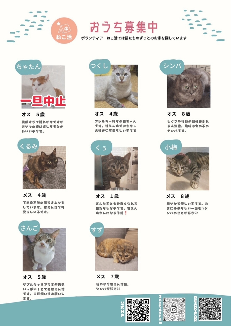 サポーター募集中/保護猫カフェ閉店で残った猫の飼育への援助を!