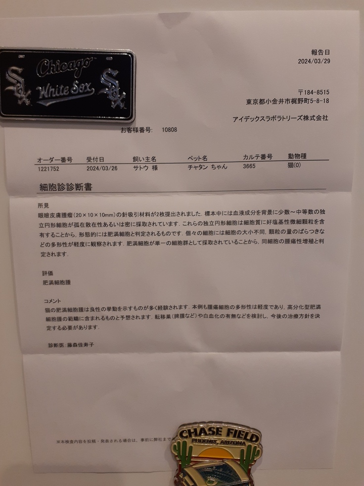 【ちゃたん君】は目の上の肥満細胞腫から分泌液がでてきたので種類が変わりました。