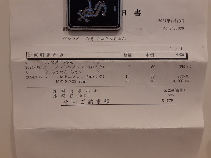 2件目の動物病院では【凪君】【ちゃたん君】の投薬をいただいてきました。
