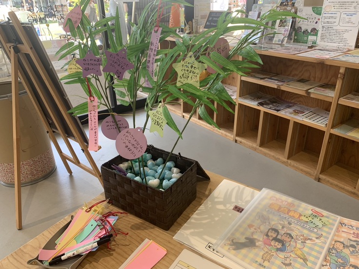 また七夕にちなんで笹の葉に願いごとを書いていただく。こちらも参加型になります。