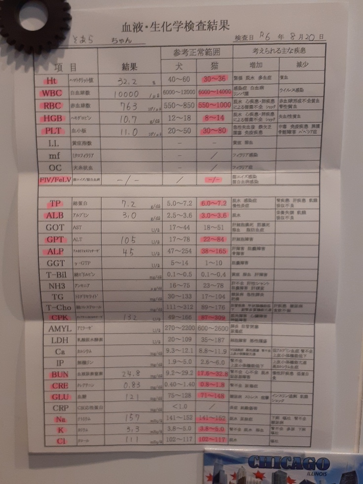 血液検査は特に大きな問題はみられず今後のケアでもっと健康に繋げられると思ってます。