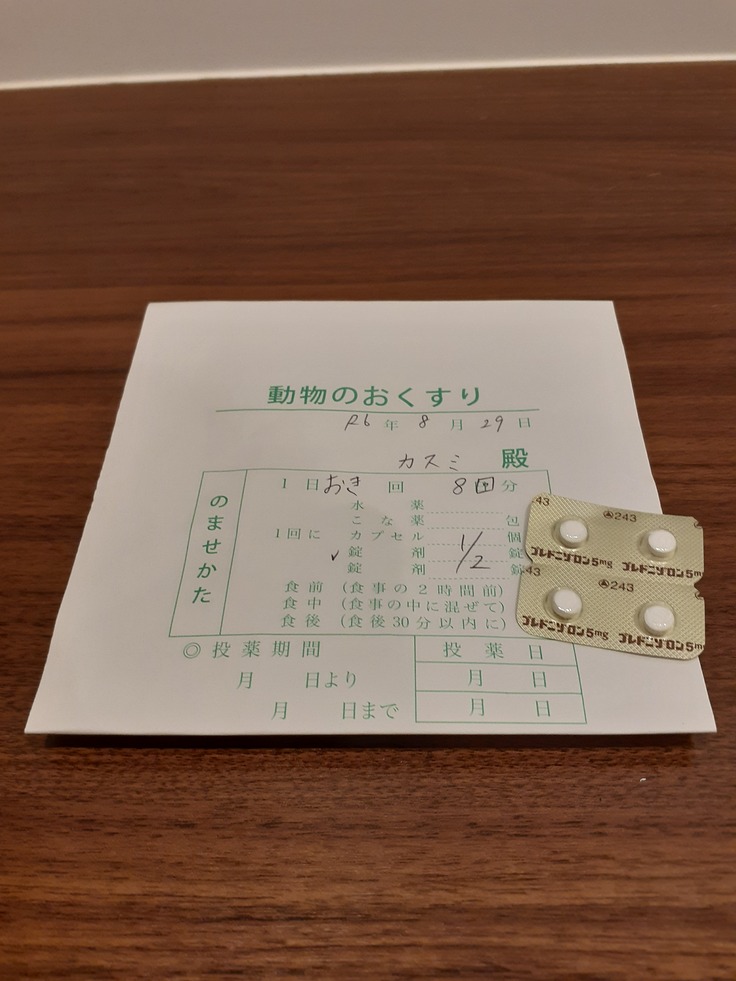 去勢時に犬のアレルギーみたいな脱毛と言われ、手術後なので抗生剤しか打てずステロイドでの治療は10日後くらいとおっしゃったので本日プレドニンを処方いただきました。