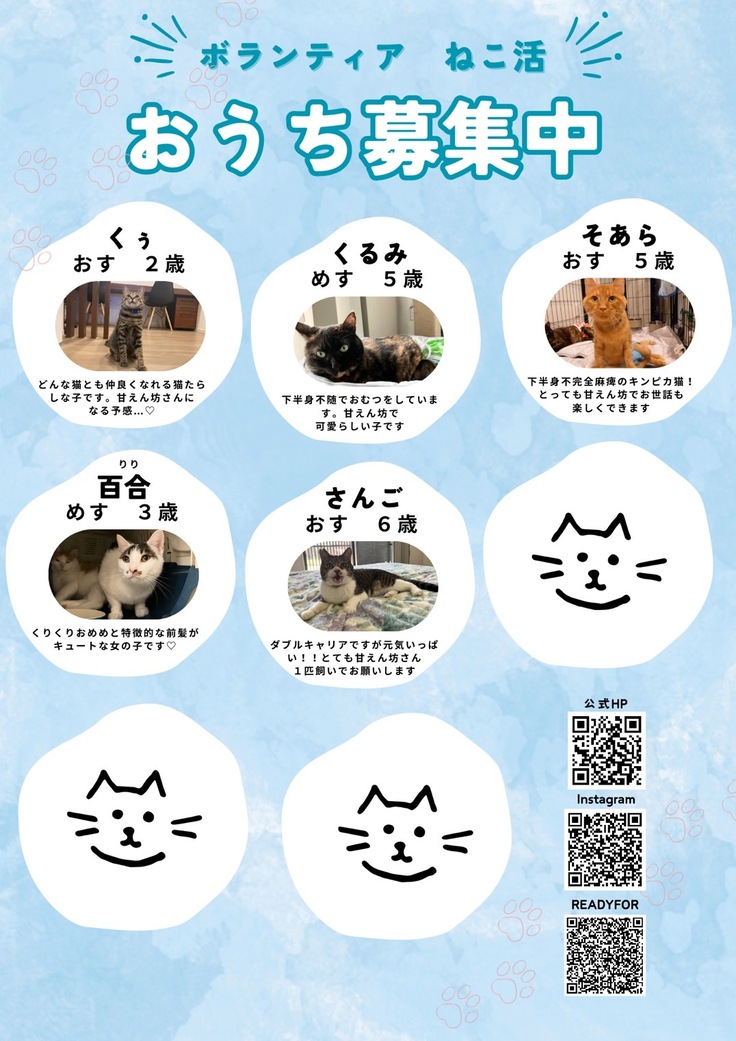 サポーター募集中/保護猫カフェ閉店で残った猫の飼育への援助を!