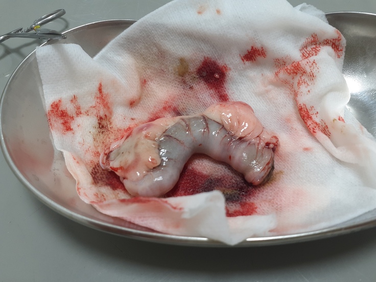 ※まずは注意事項です。今回のご報告には【凪君】の切除した腸の画像が含まれています。