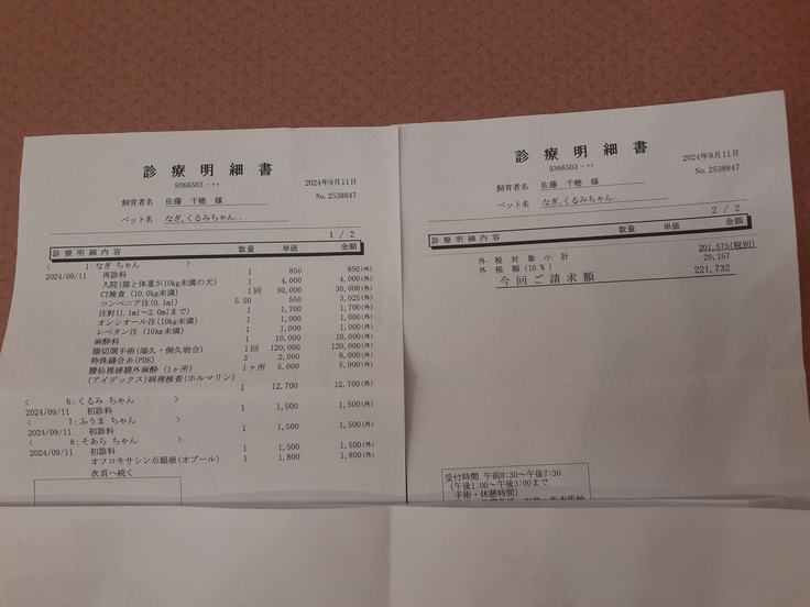 11日は【凪君】の手術、下半身麻痺の3匹の医療費が22万円を越えましたが皆さまのお陰で治療費をお支払することができました。