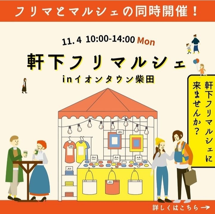 また11月4日(祝)には柴田町イオンタウン柴田にて軒下フリマルシェが開催されます。