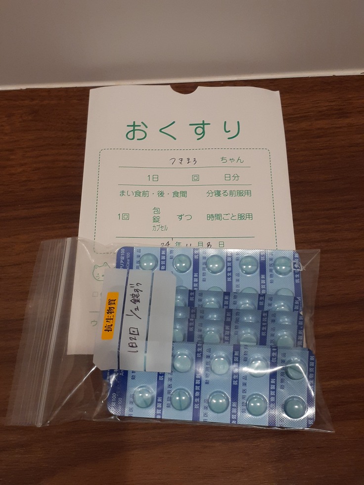 前回中耳炎治療のため1か月分の抗生物質の投薬をいただいてからの来院でした。