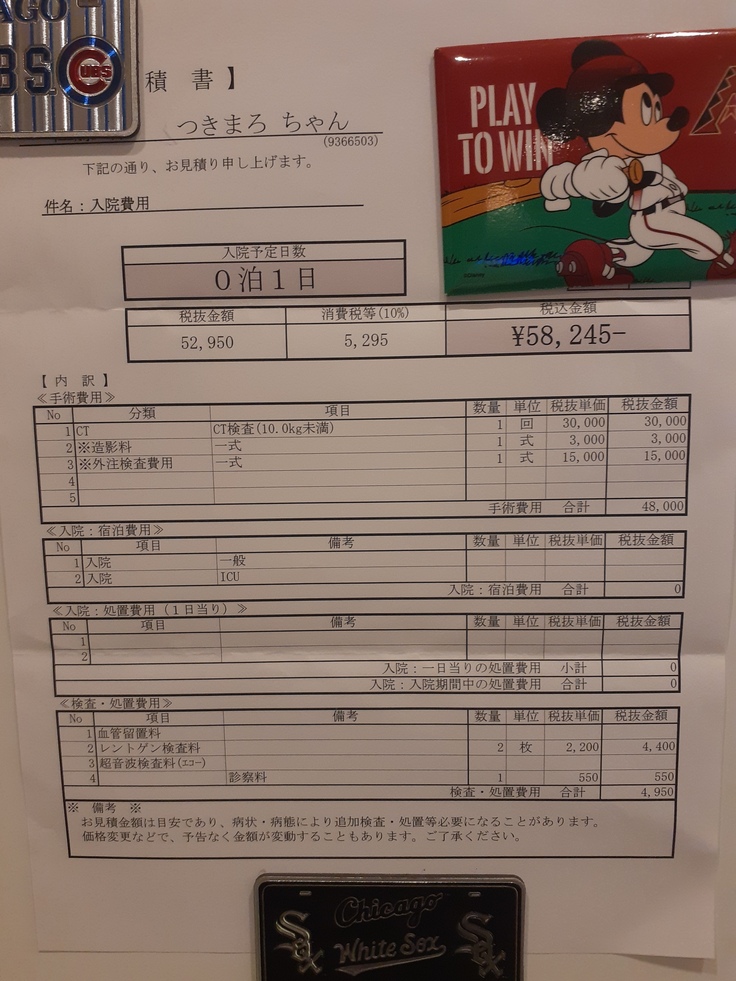 そして前回投薬をいただきCTの予約が確定している【つきまろ君】