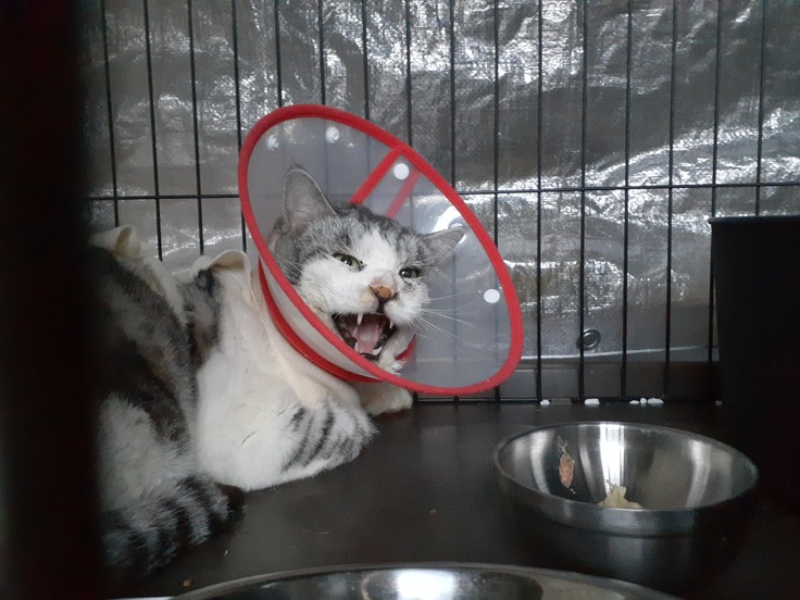 最近はカラーをしたこと、何日間か投薬をしたということ、消毒をしたことで大分傷は小さくはなっていましたが、センターでは手術をできないとのことでした。