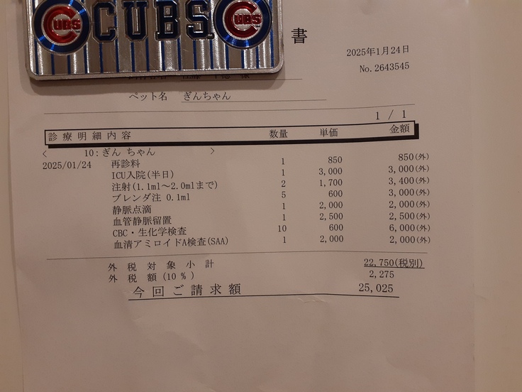 まずは皆様にご心配いただいている【ぎんちゃん】先週24日、25日のの医療についてご報告いたします。
