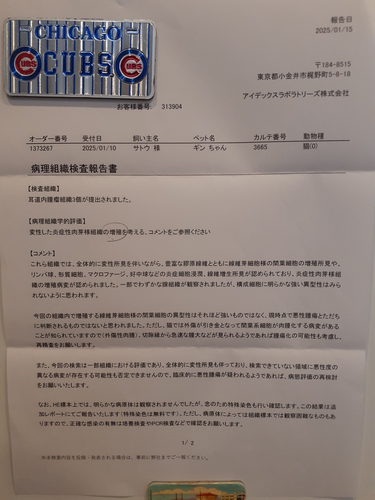 それとしても待っている病理検査の結果次第だと思うんですが。。と言ったところ病理検査の結果が届いていたことを今しがた気づいていた様子。