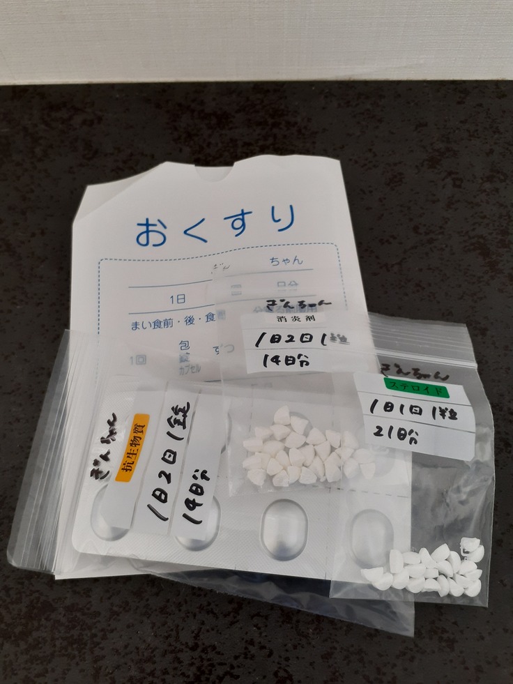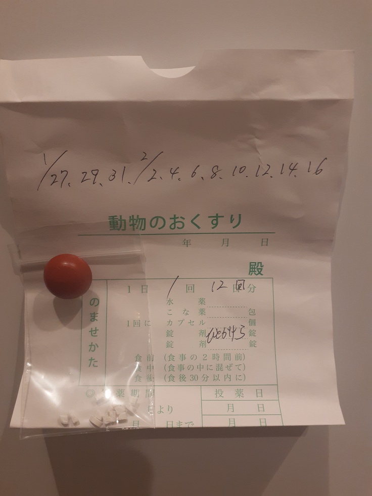 その中でやはりフードの兼ね合いもあるのですが今のところは2日1回3分の1がなんとなく症状が落ち着くのではないかと感じ、また間隔を詰めて投薬をしていくことになりました。