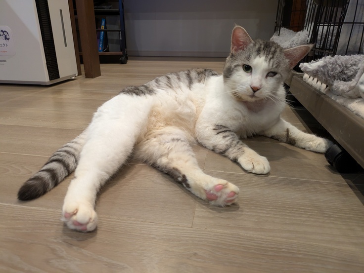 [ぎんちゃん]の手術後の傷は良くなっており、左目も瞬膜で黒目が塞がっているものの3ヶ月くらいで治る子もいるとお話を伺いました。