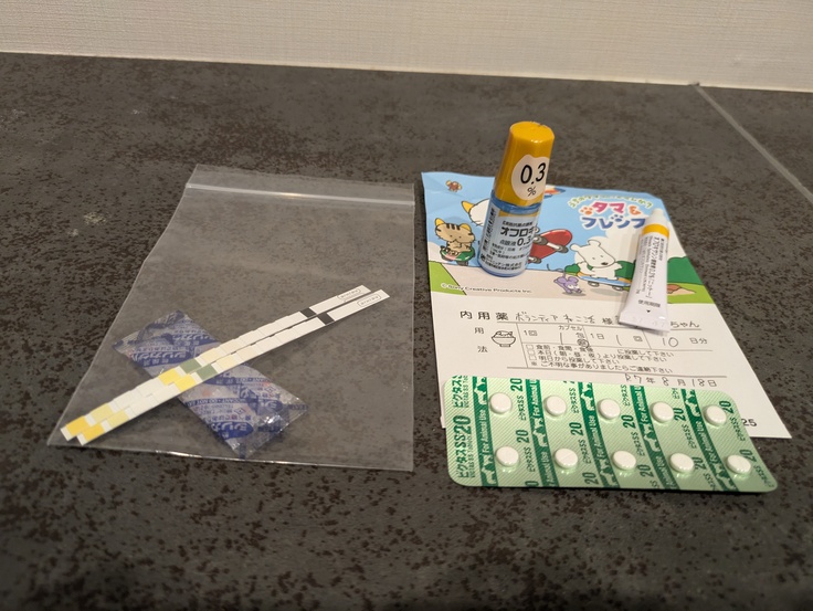 投薬をしていたためか少し赤いくらいまで回復していましたが念の為点眼薬、眼軟膏、抗生剤の薬をいただいてきました。