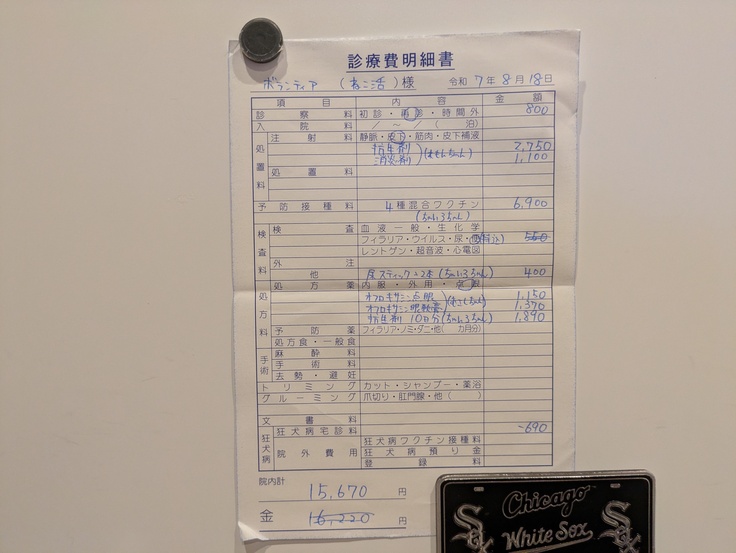 お盆があけて初の動物病院に行ってきましたのでご報告いたします。