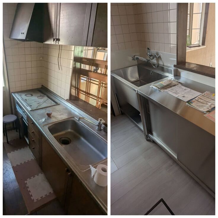 ボロボロで壊れていたキッチンを取り除き、