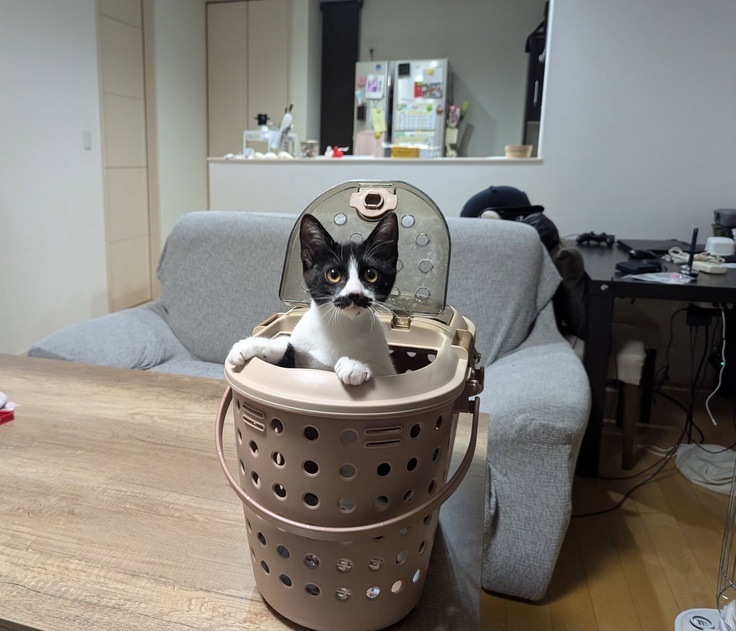 キャリーからお顔を出してキョロキョロ。