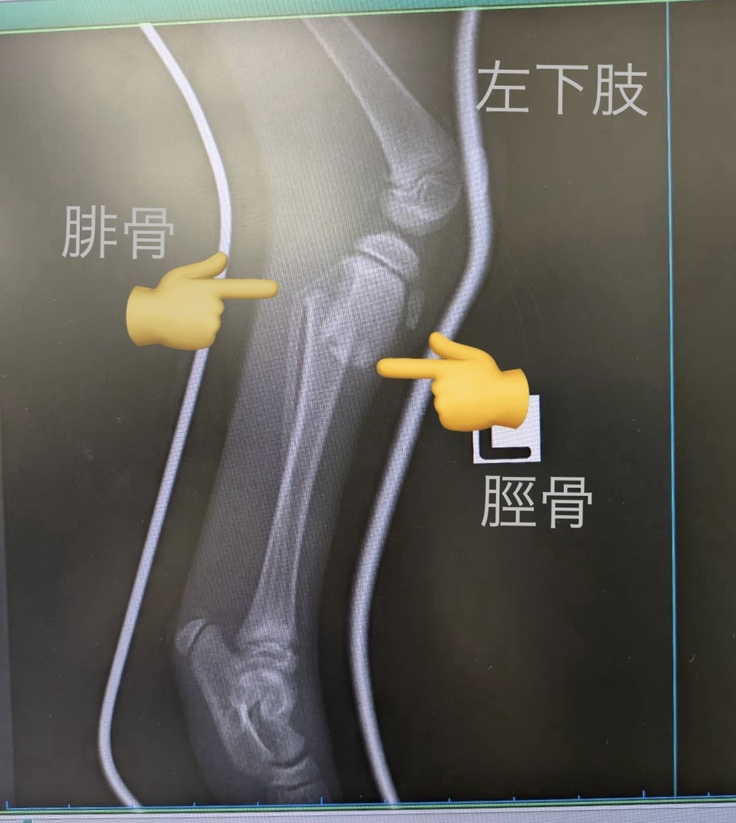 翌日、総合動物病院へ行き精査してもらうと左足に関しては脛骨も腓骨も折れていることが分かりました。そこで他の保護猫で手術歴のある動物病院へ緊急に受診し、同日入院となりました。