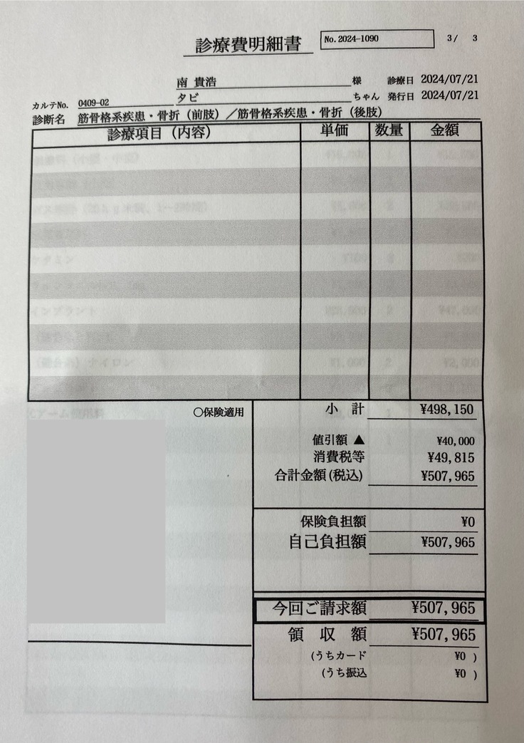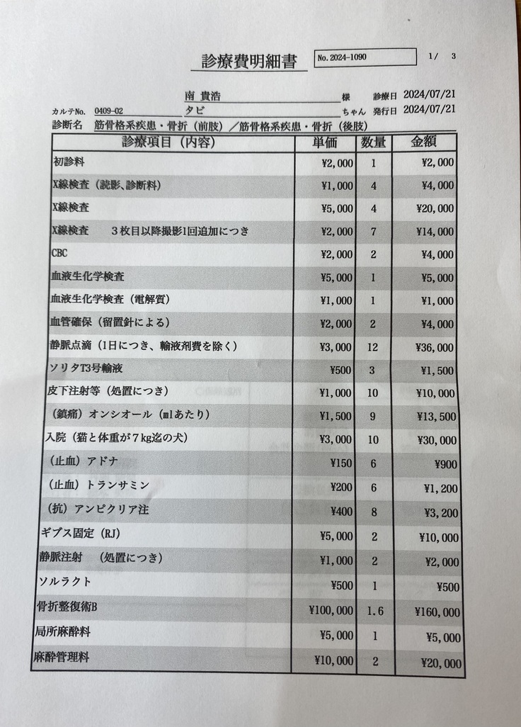 ページ上に掲載している診断書や診療明細書などの資料は全て動物病院から掲載の許諾を得ております。