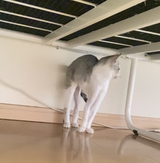 基本的には1段のゲージで過ごしているタビちゃんですが、ストレスの軽減もかねて1日のうち少しだけゲージの外に出しています。