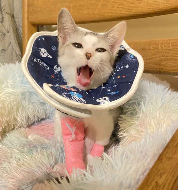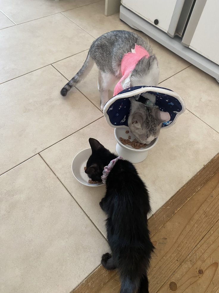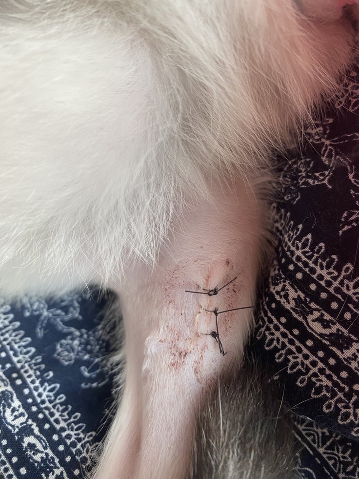 保定を取ってしまうのでカラーは抜糸まで続けます。