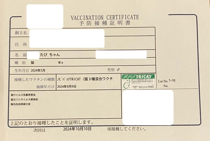 猫風邪の症状があったので延期していたワクチン接種もできました♪