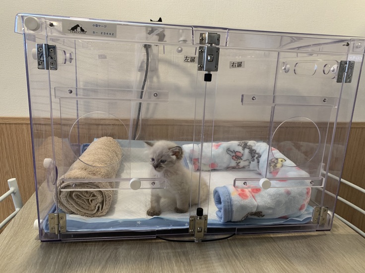 急ぎ動物用の酸素発生器と酸素室用ケージのレンタルに走り、回復を図ることになりました。