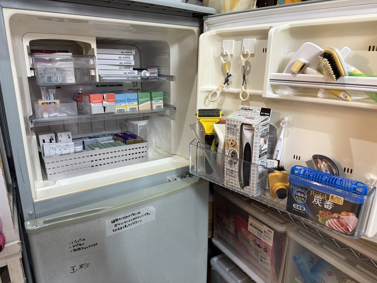 ジモティでジャンク0円の、収納も出来る冷蔵庫を探してすぐ取りに行って設置しました。
