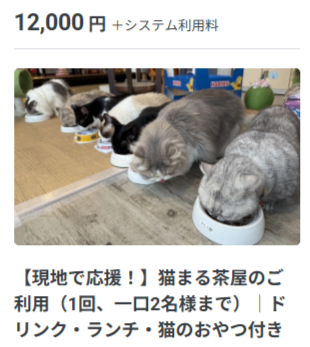 【現地で応援!】猫まる茶屋のご利用(1回、一口2名様まで)│ドリンク・ランチ・猫のおやつ付