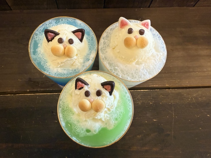 遊んで、食べて、飲んで、猫におやつをあげる!
