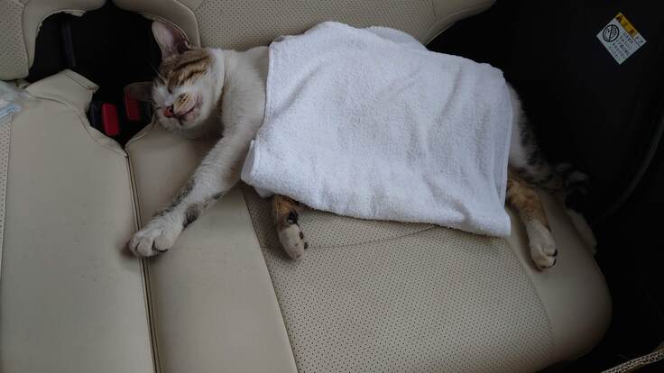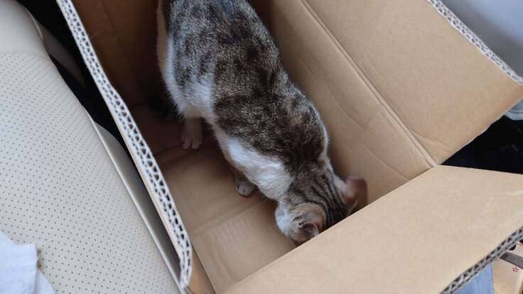 その日キャリーを持っていなかったため、慌ててコンビニに戻り空のダンボールをいただき、それに猫を入れ助手席に置き、片手でダンボールを開かないよう強く押さえながら慎重に病院へ向かったのでした。